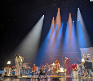 Dans un aller-retour entre les objets et elleux-mêmes, iels nous entraînent dans une quête de mémoire à la fois personnelle et collective. Pendant la représentation, nous traversons donc les époques, du passé au futur sans ordre logique. Nous traversons également l’espace, même de la chambre, pour voyager avec les objets. Cela nous amène vers ce qui semble être des fragments de vie et de rêves, des fils de souvenirs confus, portés par la scène, les acteur.rices et les objets. Au centre, comme à leur habitude, on retrouve la musique et la parole. C’est une recherche lourde de sens de revenir sur des souvenirs, de se retourner pour contempler et chercher un sens à sa vie. Tout au long de la représentation, la quête de la mémoire est parfois loufoque,parfois sentimentale..