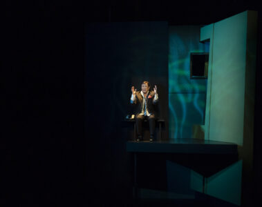 Odré a cependant ajouté à la pièce sa petite touche personnelle. Celle-ci est sublimée par une troupe qui nous dévoile la peur, l’humour, la joie, la peine, la solitude et en même temps l’enfermement collectif. Bref, toute cette palette de sentiments qu’un condamné et ses amis peuvent ressentir. Ce jeu est sublimé par l’organisation de la scène qui rend encore plus réelle la pièce. En effet, la scène ne se limite pas seulement à l’estrade, mais à l’amphithéâtre en entier. Devant nous la prison et cette fenêtre, qui nous permet de réaliser que le public représente une part de liberté, d’indépendance. À notre gauche les cinq cordes, et n’oublions surtout pas à notre droite ce duo de femmes : Léonie Grenon et France Bellemare, la première au violon, la deuxième au chant. Autant ces deux femmes immobiles, par le simple mouvement de l’archet pour l’une et des cordes vocales pour l’autre, nous prennent par les tripes, autant les acteurs se servent de leurs voix et de leurs gestes, de tout leur corps, pour exprimer leurs sentiments, leurs émotions ; la seule chose que nous ne ressentons pas, c’est bien le froid !