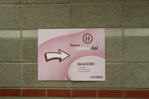 L’année dernière, Kellyane Garneau avait ouvert l’Espace Pause-toi, juste à côté du Grand Salon. Clairement identifié, cet espace permet à n’importe qui de venir se reposer, où tout simplement s’éloigner de la fête un instant. L’endroit vise la prévention au sens large : on y trouve des condoms, des produits d’hygiène féminine et il est possible d’y recevoir l’accompagnement d’une sentinelle de l’organisme montréalais Scène & Sauve.