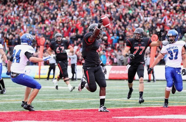 Les bleus ont répliqué au milieu du quatrième quart quand Nadeau-Piuze a rejoint Mikhaïl Davidson sur 6 verges pour ramener le pointage à 30-8 en faveur du Rouge et Or. Montréal a ajouté un placement en fin de rencontre, mais c’était trop tard. L’entraîneur des Carabins Danny Maciocia était très déçu de la performance de son équipe : «On savait que c’était une bonne équipe. Il va falloir éliminer les erreurs et faire des jeux».